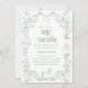Sage Green Toile Floral Bow Bear Baby Shower Invitation