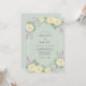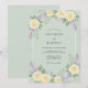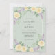 A serene sage green palette serves as the backdrop for a lush collection of pale yellow roses and delicate lavender sprigs. This watercolor botanical arrangement features soft green foliage that creates a natural, elegant floral display. It is an ideal design for a spring or summer ceremony, evoking a sense of tranquil romance.