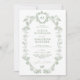 Elegant classic traditional French Victorian sage green toile de jouy chinoiserie style crest monogrammed charming wedding invitation.