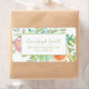 Address label with a stylish and elegant design of pink and orange watercolor floral and sage green leaves. Text is a cute and girly script font.