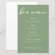 This simple solid sage green wedding bar menu features elegant white script for an outdoor ceremony in a nature setting. Minimalist typography on peaceful light green sheet for a rustic venue outside near a forest of trees.