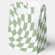 Modern bohemian Sage Green colour theme bridal wedding party products. Evergreen retro trendy warped checks design, warped chequered paper plates in beautiful elegant and chic Sage Green and white colour.