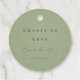 Minimalist rounf wedding favor tag in soft sage green.