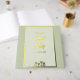 Sage green wedding guest book featuring real gold foil. Flowers design. Customise the front and side of the book with your desired text. Elegant yet minimal design. Use the template to create your own sage green and gold wedding foil guest book.