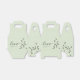Personalise each favour box with the names of the bride and groom, as well as the wedding date. This customisation adds a special touch and makes each box unique to your celebration. Our elegant Love Script, showcased in hues of dark green, sage, and light sage, perfectly complements the botanical theme of your wedding.