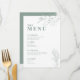 This menu is chraacterised by boho style, floral artwork, and sage green colour, with a mix of different font styles, often in different sizes, to create a unique, eclectic look that makes these menus a natural aesthetic. Printed on high-quality cardstock, they will surely impress your guests and set the tone for your special day.
