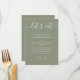 This wedding menu card features a clean, modern layout paired with a soft sage green background, creating a refined and inviting look for your reception tables. The combination of delicate script and structured typography adds a subtle contrast, making each section easy to read while still feeling elegant and cohesive. Perfect for displaying multi course meals, plated dinners, or curated menus. This card becomes a natural part of your table setting without overwhelming the overall decor. The soft sage tone pairs beautifully with modern minimalist weddings, garden celebrations, outdoor receptions, and nature inspired styles, while also complementing neutral and earthy color palettes.