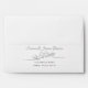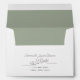 Simple, modern, minimalist, calligraphy white and sage green 5x7 envelope for wedding invitation with return address and unique silver grey couple love birds drawing.