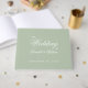 A simple wedding book with a modern colour, sage green, and elegant white calligraphy.