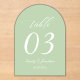 Sage Green Wedding Table Number Acrylic