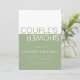 This wedding shower invitation presents a modern and playful aesthetic with its combination of sage green and white colour blocks. The top of the invite is white while the bottom has a refreshing sage green shade. The word 'COUPLE'S' is inscribed in sage green on the white block while the word 'SHOWER' is written in white on the sage green block in an upside down fashion. The minimalist look is further enhanced by the use of a simple font. On the other side, the couple's initials in white are gracefully placed on a sage green background, making this invitation complete.