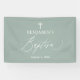 Sage Green White Cross Boy Baptism Backdrop Banner