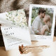 This template combines romantic botanical artwork on the front with a clean, modern photo space on the back, creating a balanced and timeless look for couples who want both artistry and personal storytelling.