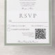 Sage Green & White Monogram Minimal QR Code All In One Invitation