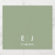 Elegant classic monogrammed napkin bands in sage green and white with your initials and wedding date in traditional minimalist text.