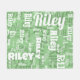 Sage Green White Name Pattern Personalised Fleece Blanket