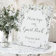 Watercolor painted white peonies and silver eucalyptus greenery vines with a grey script with your names and wedding date asking your guests to sign your guest book.