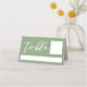 This simple solid sage green wedding place card features elegant white script for an outdoor ceremony in a nature setting. Minimalist typography on peaceful light green reception decor for a rustic venue outside near a forest of trees.