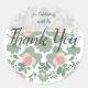 Elegant sage green wildflower thank you design created for wedding favors, gift packaging and guest appreciation details. Featuring soft botanical florals and a refined modern layout, this round design adds a sophisticated finishing touch to any romantic wedding.