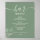Sage Green Wildflowers Wedding Bar Menu Poster