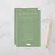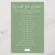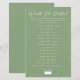 This simple solid sage green bridal shower party game features elegant white typography for an outdoor party in a nature setting. Would She Rather bride trivia game in minimalist script on a peaceful light green sheet for a rustic venue outside near a forest of trees.