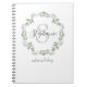 This elegant personalised notebook features a wreath of watercolor foliage in shades of sage green and grey encircling the name in modern charcoal grey/off-black handwriting style script and the monogram initial in light grey open serif type. Below the wreath is a line that reads "notes and ideas"--or customise it with your own text. See our Sage Greenery Botanical collection for coordinating designs.