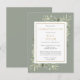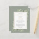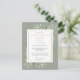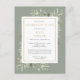 An elegant personalised celebration of life remembrance funeral invitation postcard featuring botanical watercolor greenery foliage on a sage green background. Designed by Thisisnotme©