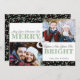 TeeLofts' 2-photo Christmas pattern card design features Merry & Bright bold modern typography and a light grey ampersand overlaid over the design elements. The design is accented with holiday greenery line art in sage green and red which is repeated on the back. It's easy to add your family names and two photos. The reverse side is dated with the year. #Christmas #Holidays #ChristmasCards