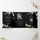 Sage Greenery Gold Ampersand QR Code Black Wedding Tri-Fold Invitation