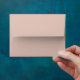 Simple Wedding RSVP Envelope with "kindly deliver to" in an elegant script along with your return address over a dusty rose pink background. Inside are watercolor painted roses in dusty pink along with greenery in sage green. This Wedding RSVP Envelope is great for a spring or summer wedding.