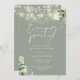 This elegant sage green botanical greenery floral string lights wedding evening party invitation featuring pretty string lights and floral greenery, can be personalised with your information in chic typography with your wedding website details and your QR code on the reverse. Designed by Thisisnotme©