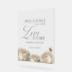 Modern stylish wedding welcome sign, with elegant watercolor floral sage greenery and dusty white garden roses, elegant modern hand drawn calligraphy. Classy and elegant, soft and modern sign