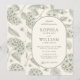 The background is adorned with a stunning allover print of sage green hydrangeas, meticulously rendered in a vintage engraving style. This intricate design evokes the charm and grace of a bygone era, creating a serene and romantic atmosphere for your wedding details.