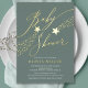 SilverFoil baby shower invitation featuring a modern script set on a sage green background.