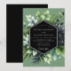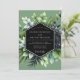 Modern elegance meets natural beauty in this sophisticated botanical design. A soft sage green background provides a beautiful canvas for lush arrangements of watercolor succulents and verdant greenery. Pale mint, grey-green, and deep charcoal botanicals create a chic, moody atmosphere. This artful composition is perfect for a contemporary, nature-inspired affair.