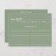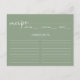 The Sage Minimalist Script Bridal Shower Recipe Card is a stylish and elegant choice for any bride-to-be's special day. With its simple and modern design featuring a beautiful sage colour and minimalist script font, these recipe cards are perfect for capturing cherished family recipes or requesting new ones from loved ones during a bridal shower.