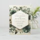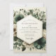 This design features a moody and romantic floral arrangement. Painterly sage green anemones and lush cream-colored blossoms are elegantly intertwined with delicate leaves and buds. The artistic watercolor style on a soft ivory background creates a sophisticated and timeless atmosphere for your special day.