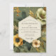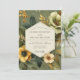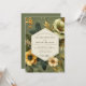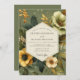 Experience a vintage botanical aesthetic with this elegant design. A beautiful arrangement of marigold yellow and cream anemones blooms against a rich sage green background. Darker foliage and delicate golden sprigs add depth, creating a sophisticated and earthy mood for your special union.