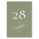 Sage on White Elegant Calligraphy Wedding Table Number