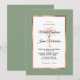 Invite your guests to help you celebrate your special day with this elegant invitation featuring modern script, rose gold copper and black text including an artistic palm tree and metallic rose gold copper frame on the front. Perfect for a beach or outdoor wedding. A sage green background is on the front and back of the card. If you need help or a custom order, please contact me.