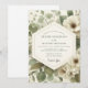Embrace a timeless and elegant aesthetic for your special day. This design features delicate, soft white anemones with distinctive dark centers, beautifully rendered in a watercolor style. Lush sage green foliage creates a serene botanical backdrop. The overall mood is one of understated romance and classic sophistication.
