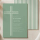 Sage Striped Cross Baptism Invitation