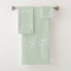 This sage bathroom towel set has a sage background but you can customise it with a different colour to match your bathroom decor.