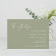 The night before... Make sure everything is perfect for the big day; get some modern invitations for your wedding rehearsal dinner. A modern typography and a trendy sage green colour for your wedding stationery: choose this simple and elegant wedding suite. Fully customisable: you can change the background as well as the text colour as you like.