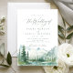 Watercolor lush green pine forest, teal river, and misty mountain with sage modern script, elegant and romantic, great invitations for boho rustic wedding and mountain forest destination wedding in spring and summer.