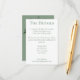 This must-have details card features your details in a modern serif font. This is the perfect place to note accommodations and other pertinent wedding information. The back features your wedding date framed by white roses & eucalyptus with blush, pink & peach floral elements against a rich sage green background.