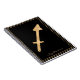 Stylised hammered gold Sagittarius astrology zodiac birthday symbol in a hand drawn gold double line frame. This notebook or dream journal or writing pad has Sagittarius text in a fine script, which can be personalised to narrate your own story.