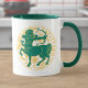 Sagittarius sign of the zodiac in green and yellow on a two-tone coffee mug.