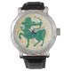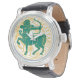 Sagittarius sign of the zodiac in green and white on a wristwatch.