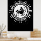 This striking black and white design showcases the Sagittarius zodiac symbol, featuring a centaur archer poised with bow and arrow at the centre. Surrounded by a radiant burst of stars and lines, the bold circular composition creates a powerful celestial effect. Its sharp contrast and cosmic detailing capture the adventurous, free-spirited energy of Sagittarius with a modern, mystical style.